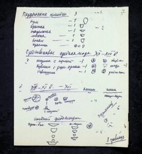 - Архівний номер: НА ІА НАН України, ф. 34, оп. 4, спр. 15. Вкладені у поквадратний опис різні нотатки, чернетка звіту