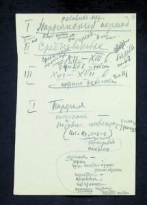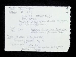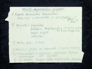 - Опис: Вкладені у поквадратний опис різні нотатки, чернетка звіту