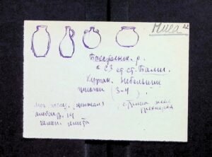 - Архівний номер: НА ІА НАН України, ф. 34, оп. 4, спр. 28. Різні виписки і замальовки на кальці, зокрема аналогії ритонів