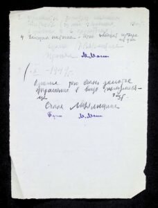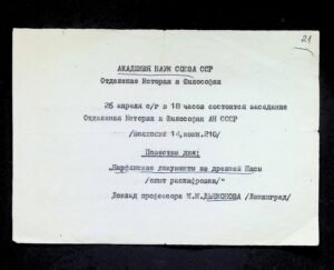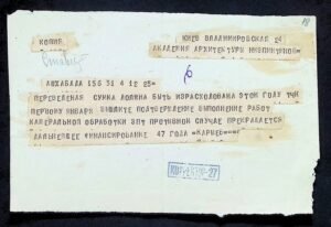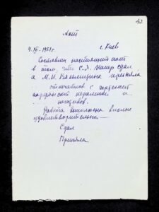 - Архівний номер: НА ІА НАН України, ф. 34, оп. 4, спр. 45. Різні документи: телеграми, запрошення, розписки, кошториси
