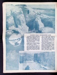 Опис: Газети: вирізка з газети з заміткою про Нісу авторства В. Массона; Туркменська фото-газета (щомісячний ілюстрований журнал) № 8 за 1948 р. з розворотом про розкопки Ніси; газета Правда за 8 січня 1952 року, яка лежала разом з документами